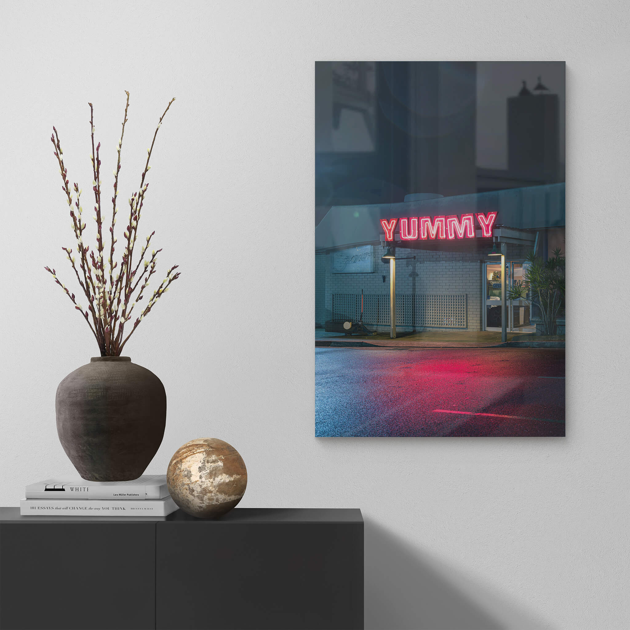 Glass prints: Ilford Galerie Metallic Gloss 260gsm — face-mounted to 6mm toughened glass.