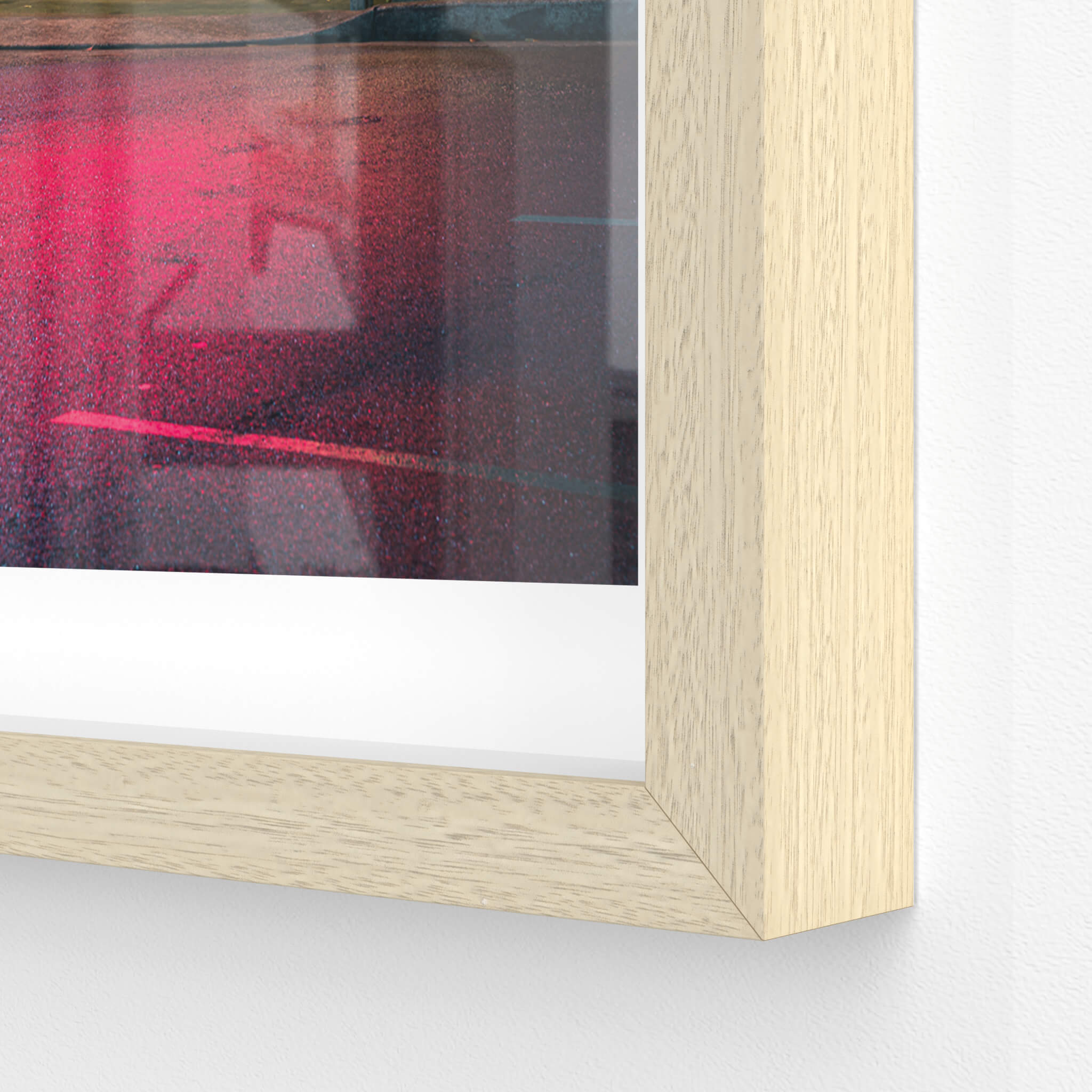 Framed — sustainably sourced timber in raw, white, or black finish.