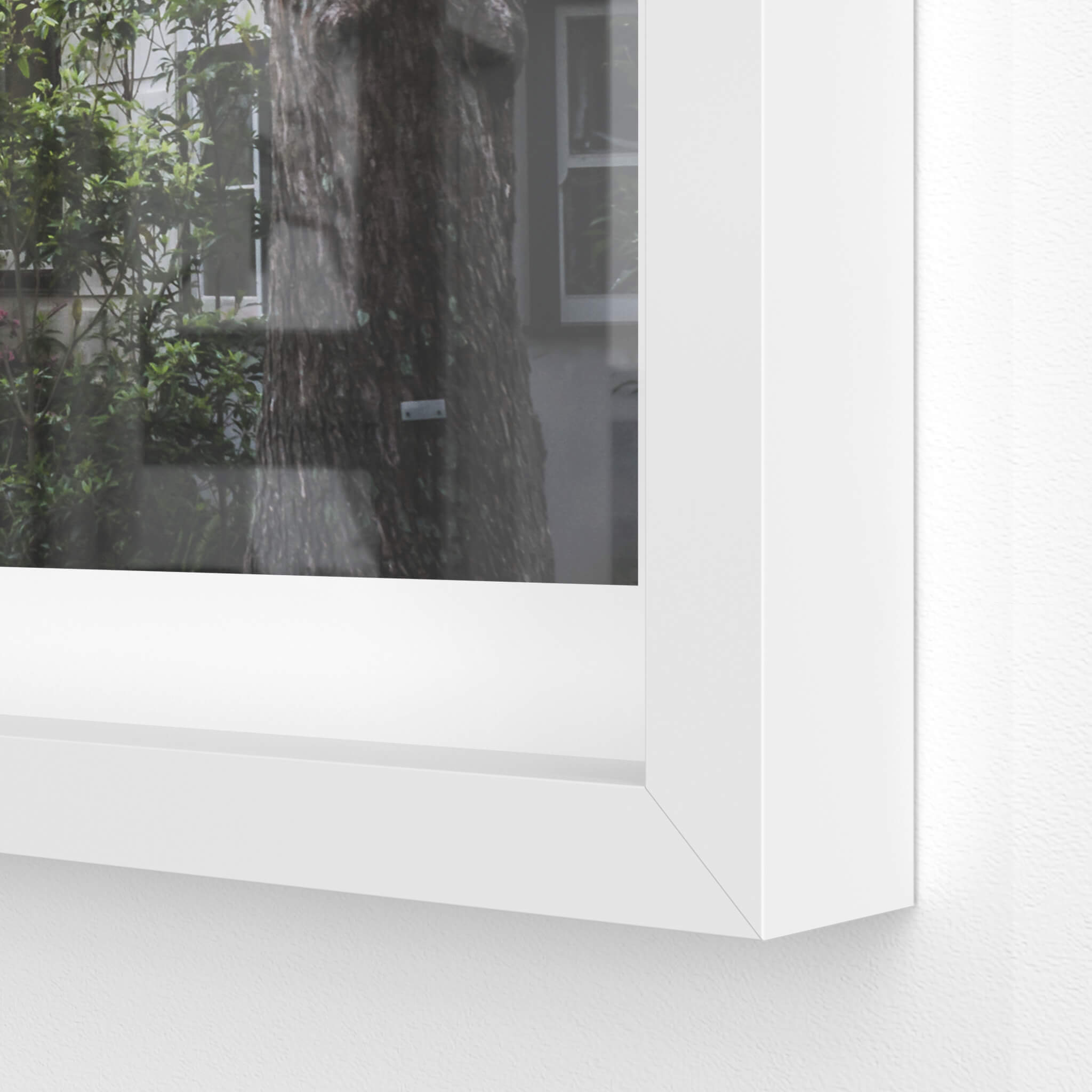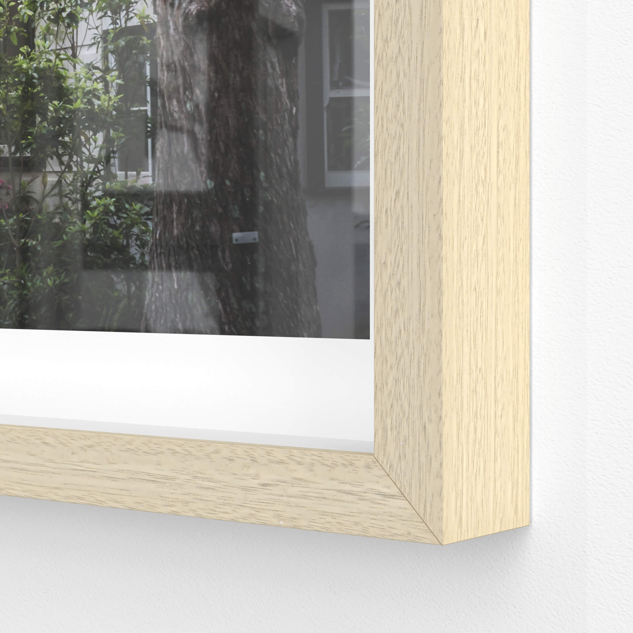 Framed — sustainably sourced timber in raw, white, or black finish.