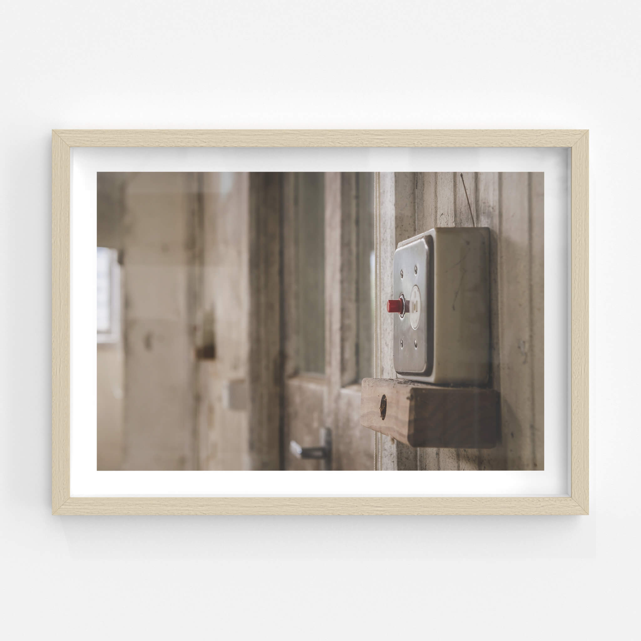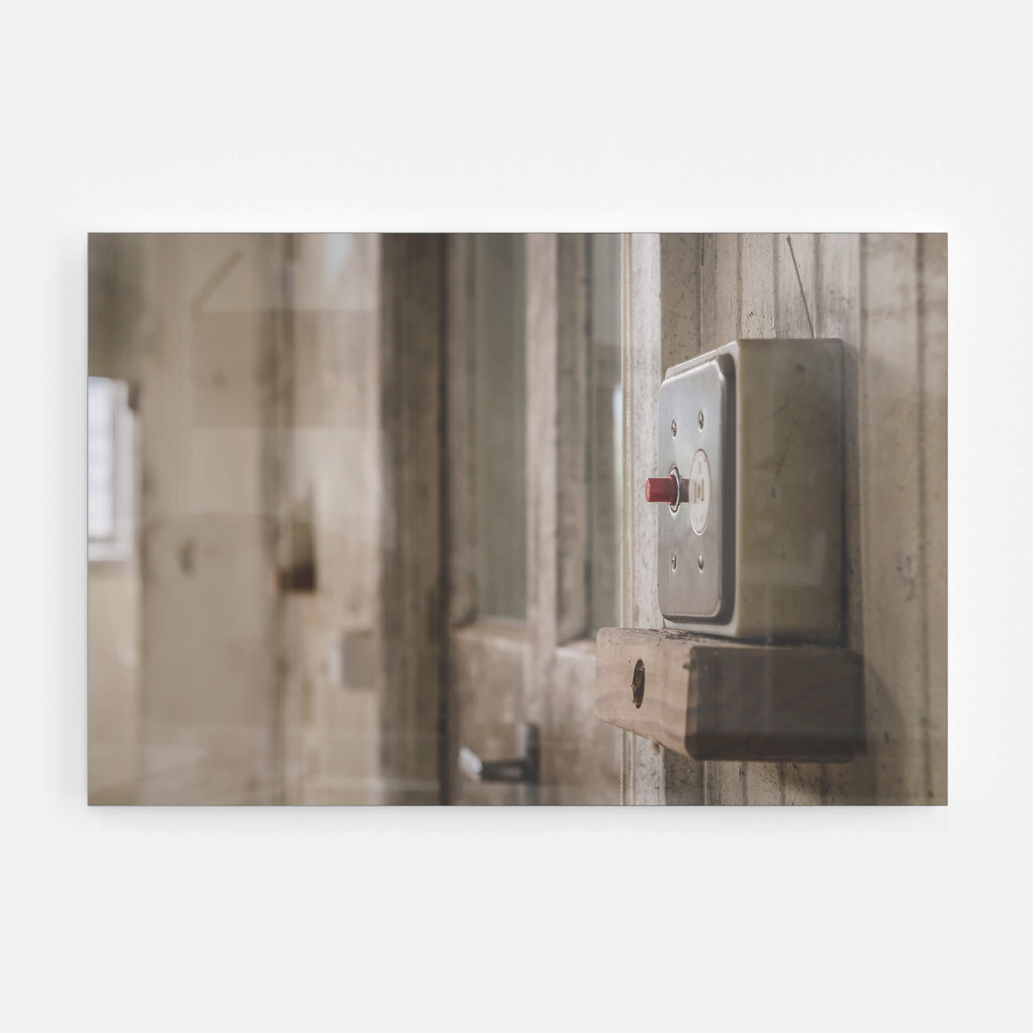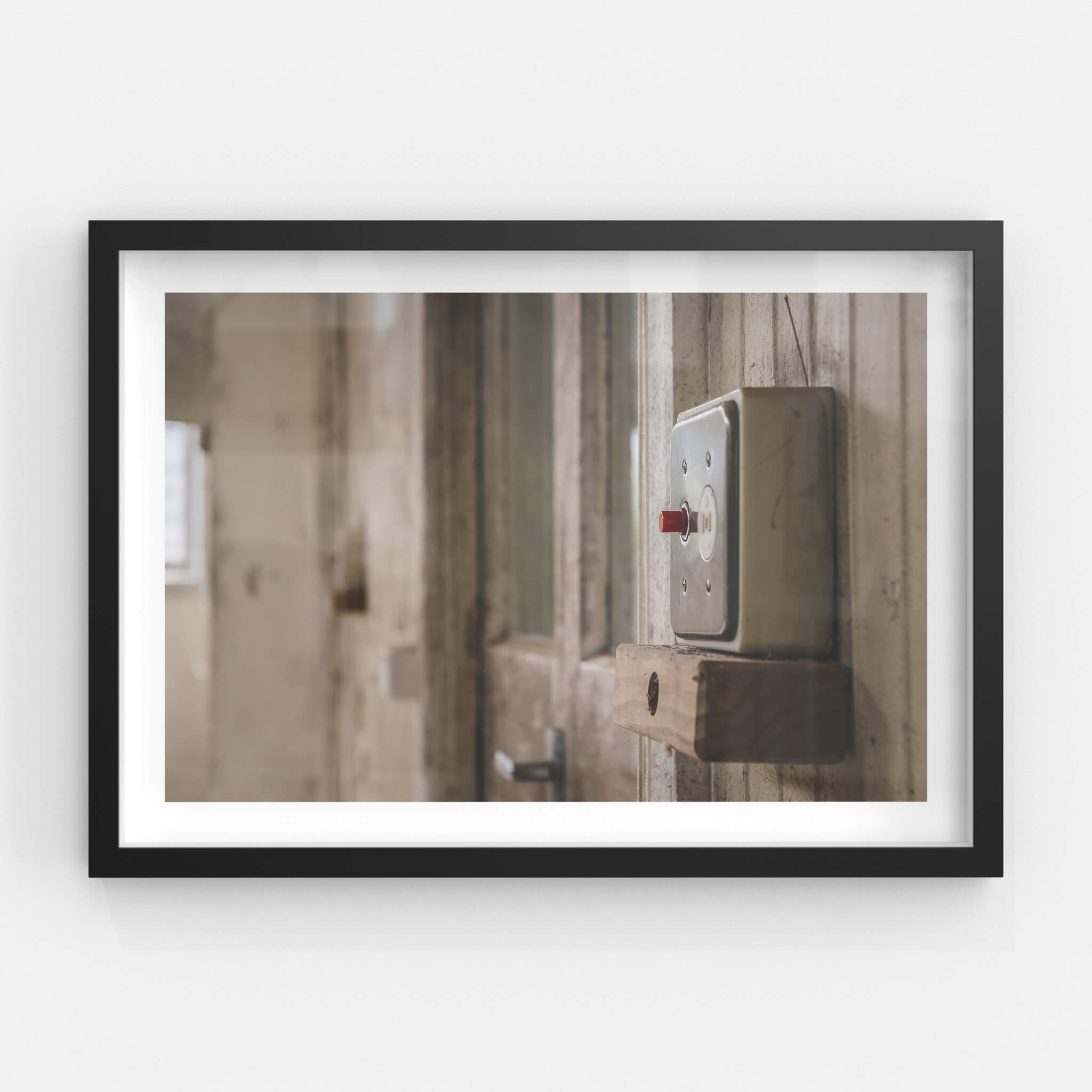 This worn nurse call button remains fixed to a decaying wall inside the Queen Victoria Sanitorium. It once connected patients to vital care, now only echoes fill the abandoned wards.