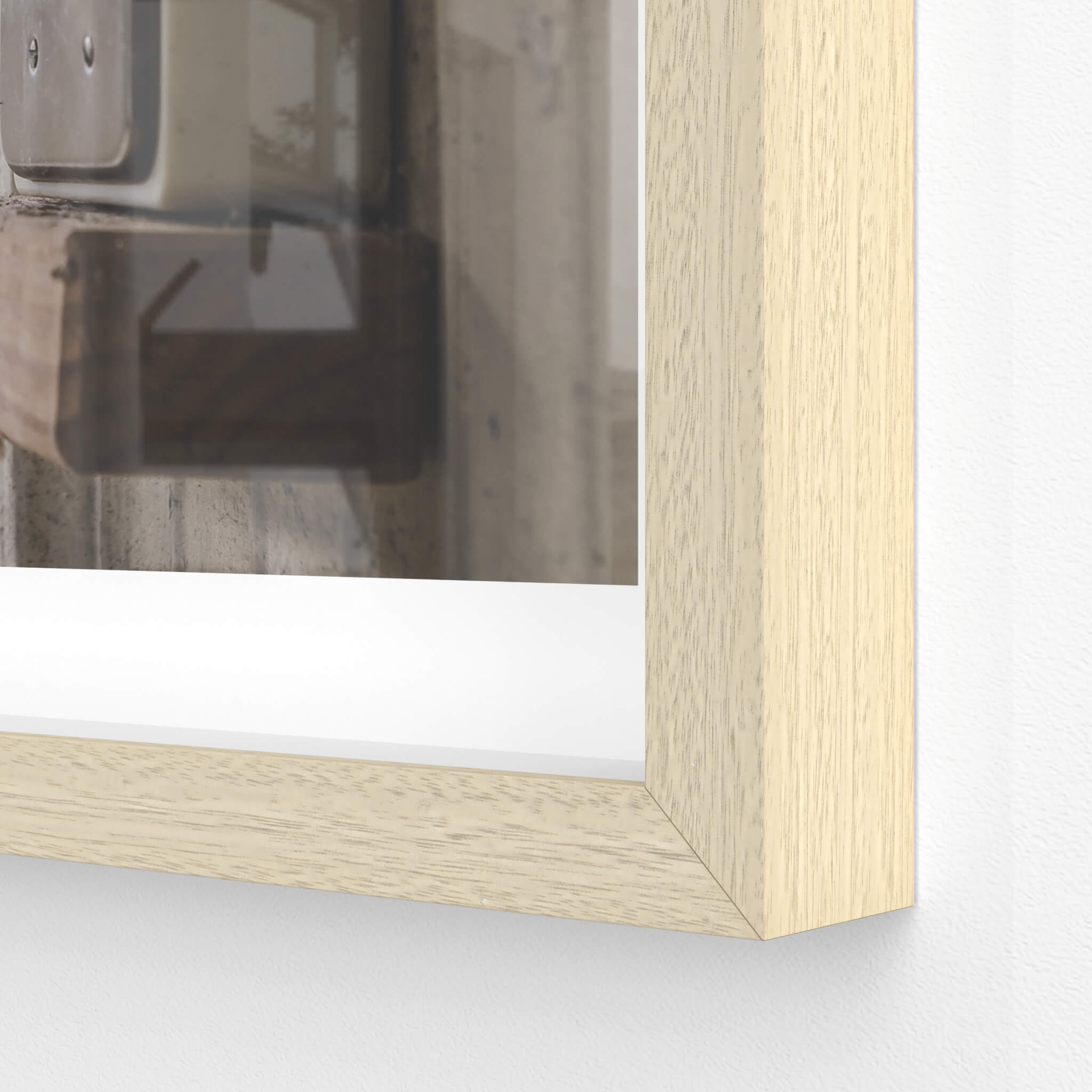 Framed — sustainably sourced timber in raw, white, or black finish.