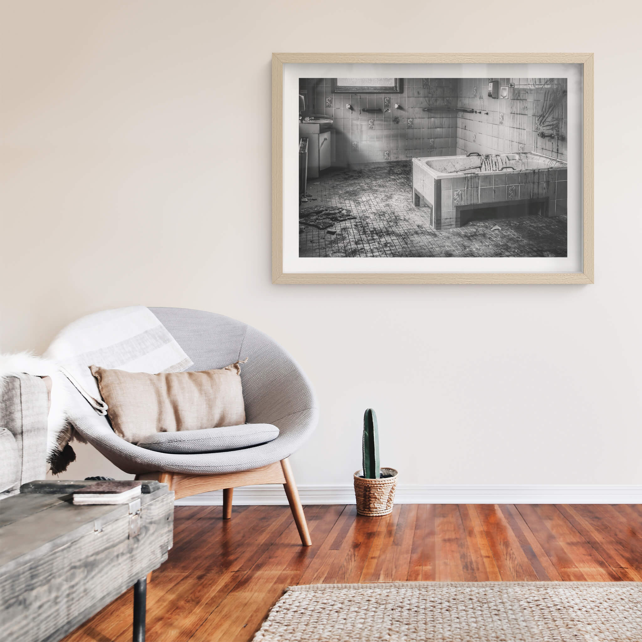 Framed — sustainably sourced timber in raw, white, or black finish.