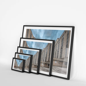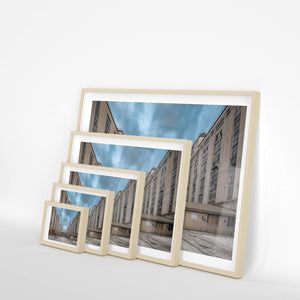 - Framed prints: Sustainably sourced timber in raw, white, or black finishes.