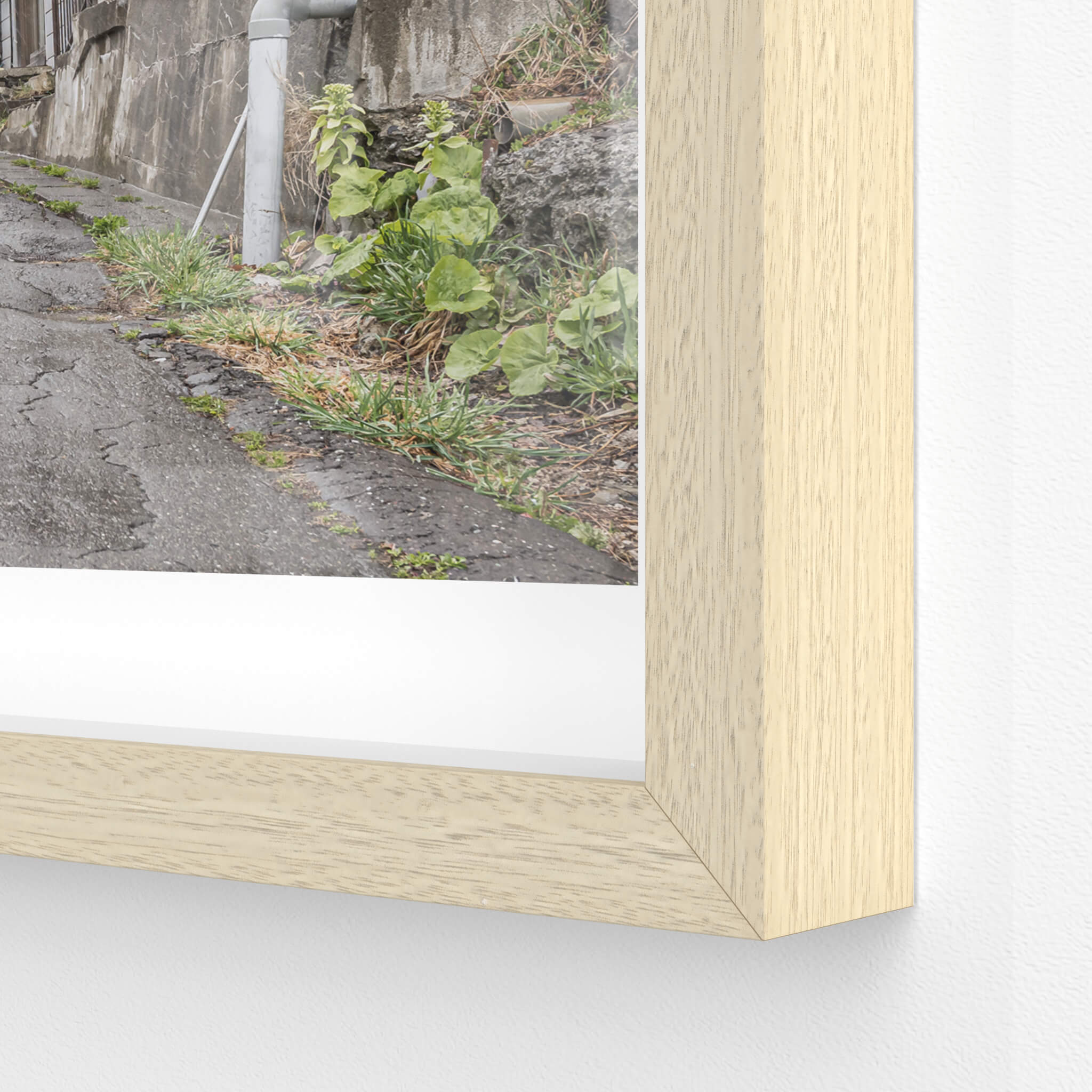 Glass print — 6mm toughened low-iron glass, bevelled edge, concealed mount.