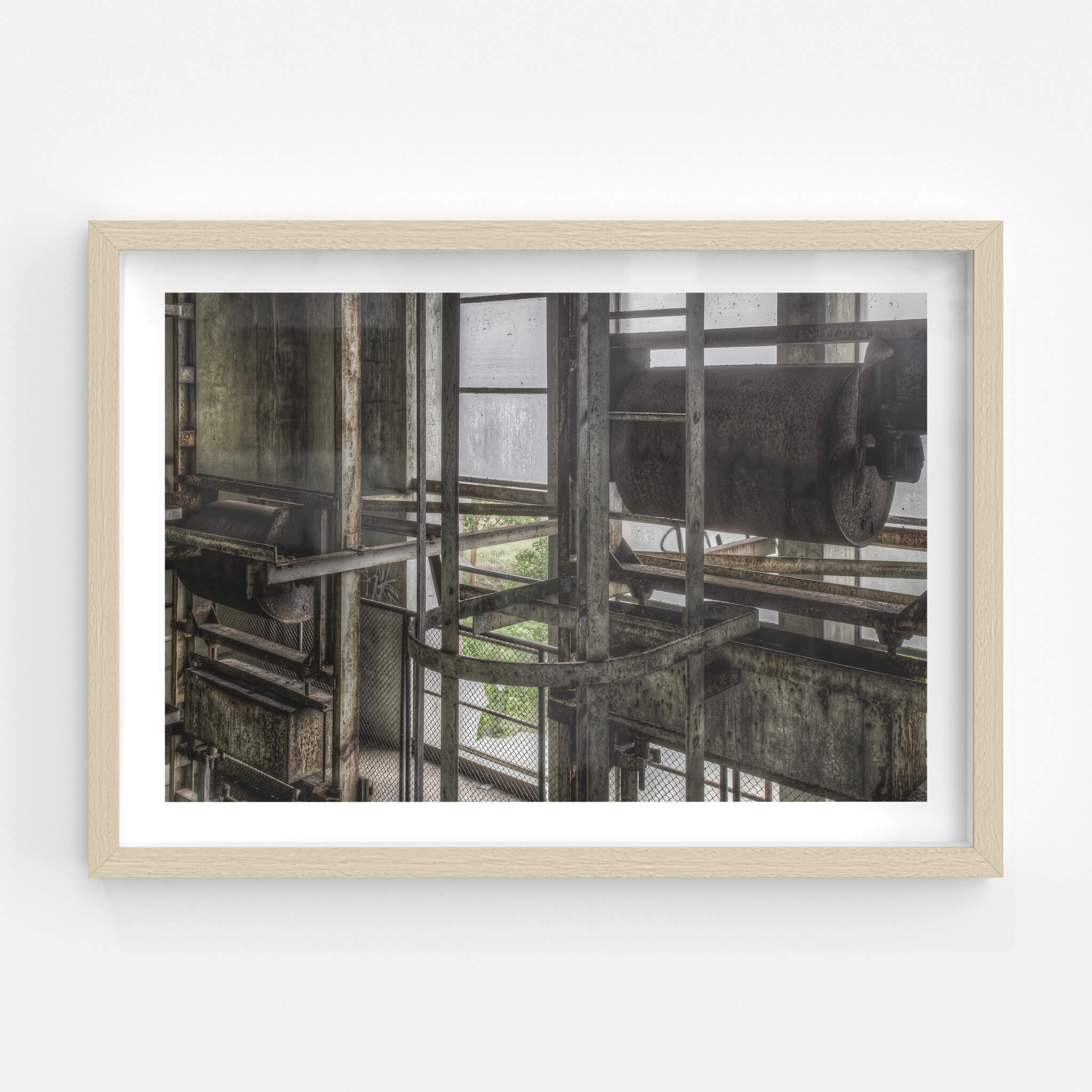 Glass print — 6mm toughened low-iron glass, bevelled edge, concealed mount.