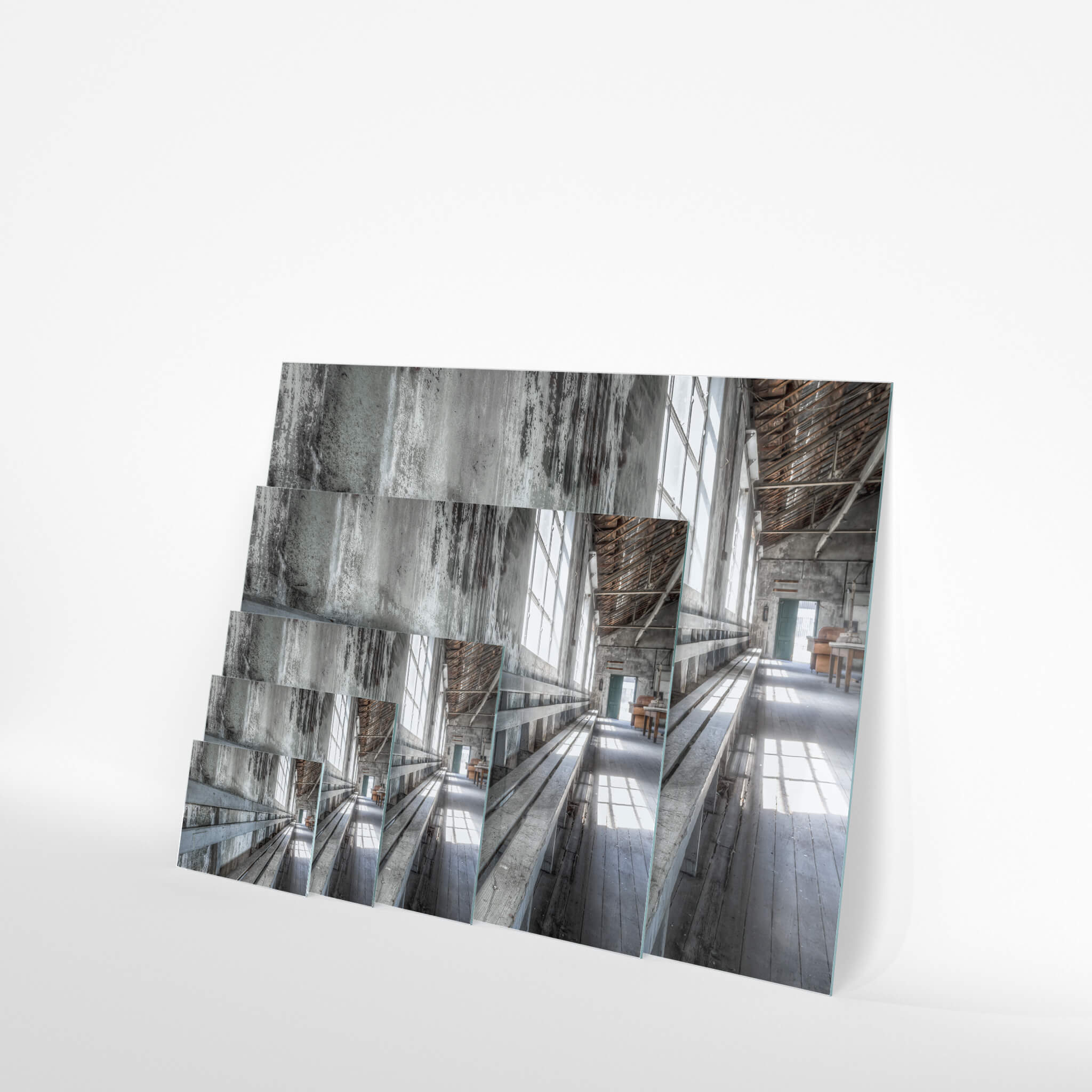Glass prints: Ilford Galerie Metallic Gloss 260gsm — face-mounted to 6mm toughened glass.