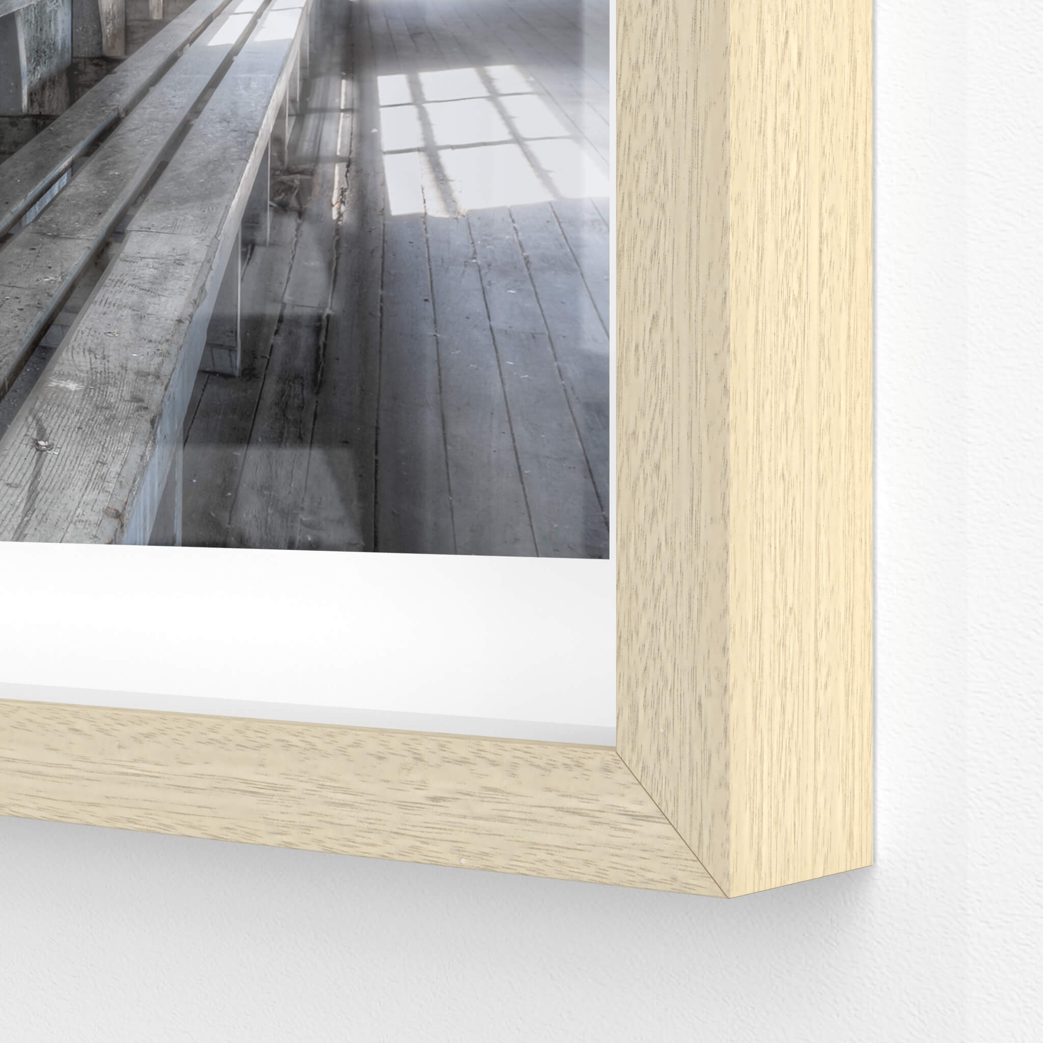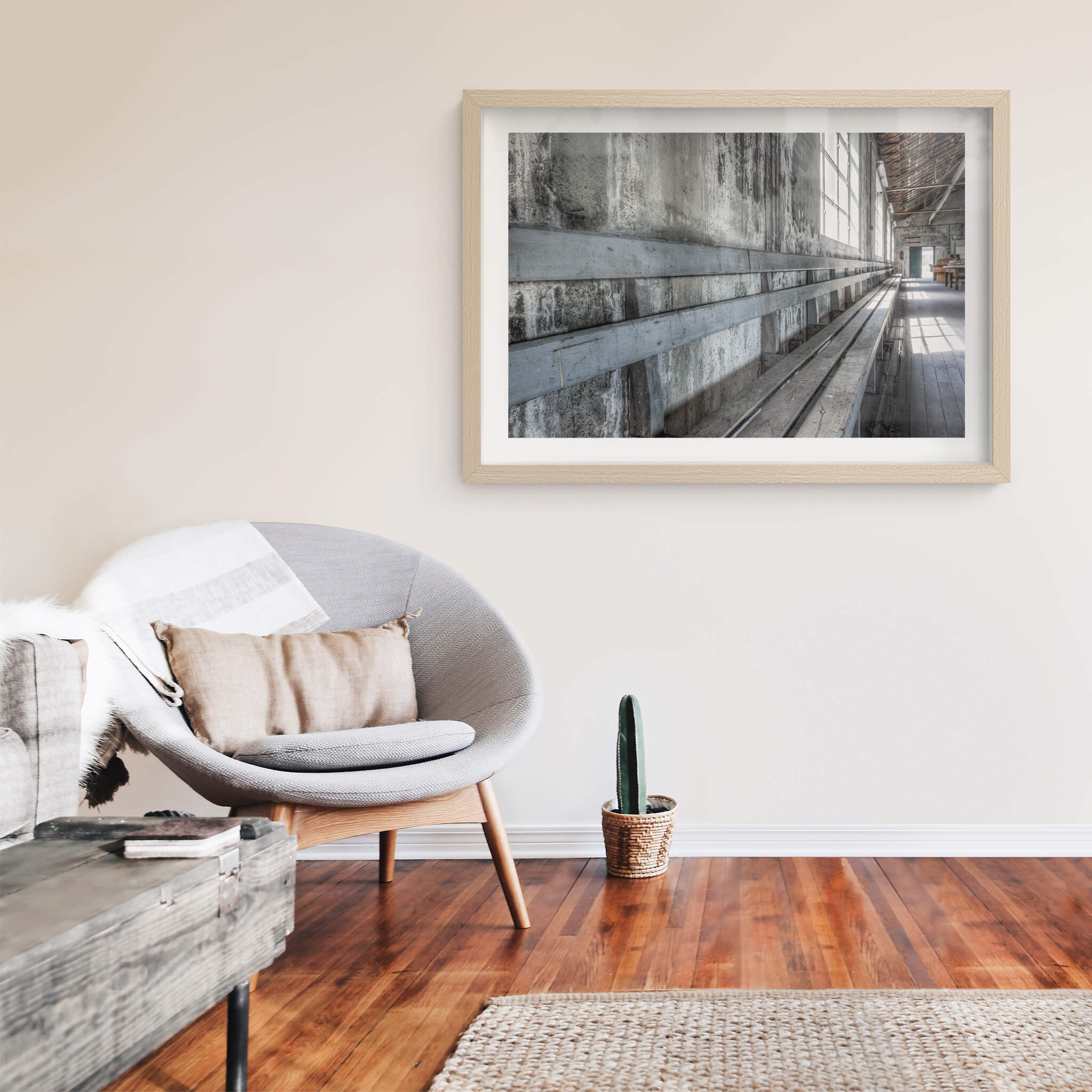 Framed — sustainably sourced timber in raw, white, or black finish.